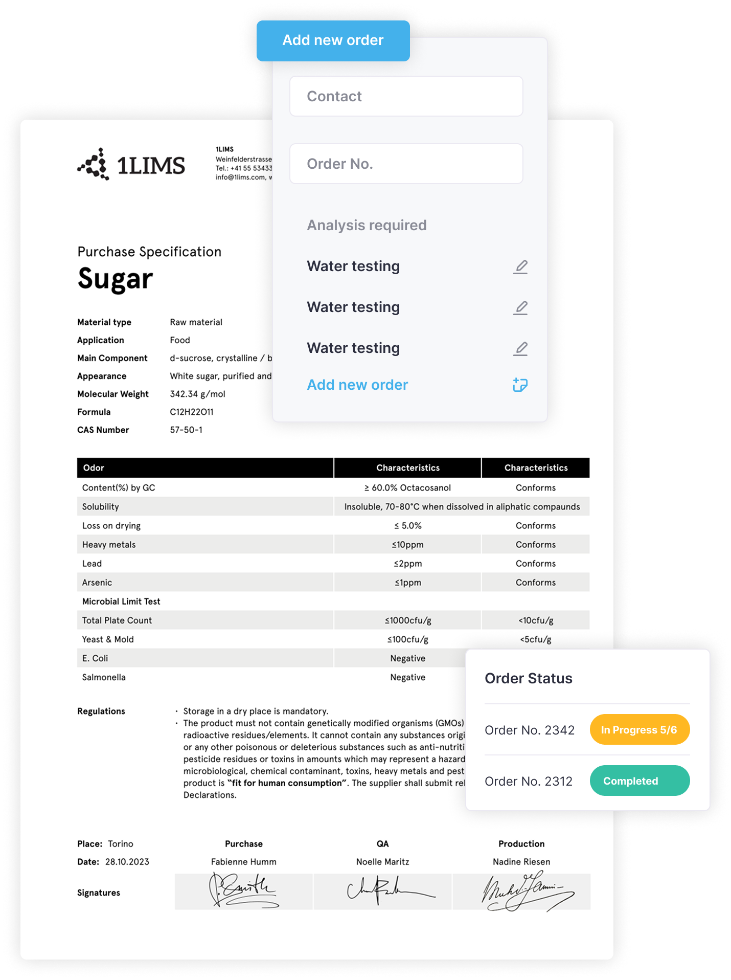 QA reviews and approves the results inside the LIMS. Certificates of analysis are generated automatically, and all related documentation is stored in one place. Every step, from test order creation to final approval, is traceable and audit-ready.